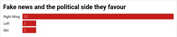 The graph shows which political side the false political claims favoured.
