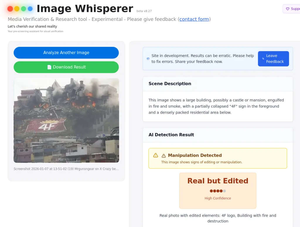 The analysis revealed that an old and edited image and a recent video were falsely attributed to the make-believe destruction of the mausoleum of the former Venezuelan president Hugo Chavez by the US airstrike that struck Venezuela on January 3.