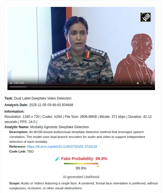 The analysis of the viral video indicates that the social media users propagated an AI-altered video of Colonel Sofia Qureshi.