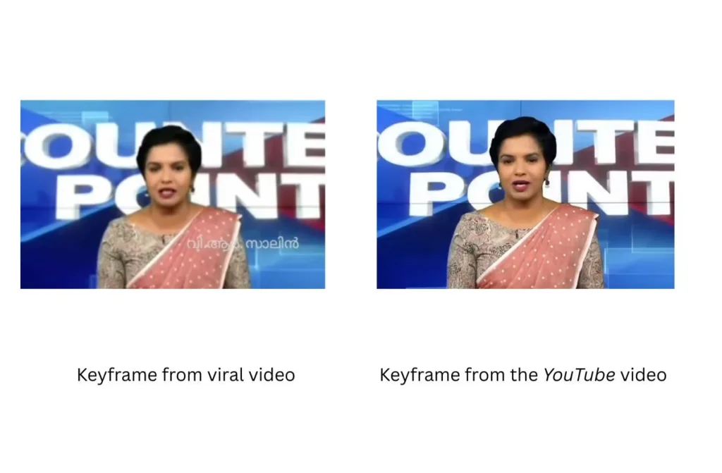 We looked into the keyframes of the viral video alongside those of the YouTube video and discovered they are identical, confirming that the viral video is a segment taken from the former.