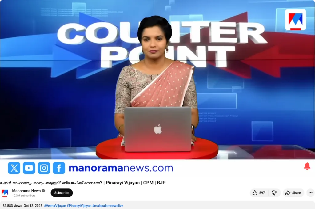 While Kerala was abuzz with the debate over the elimination of extreme poverty, fake videos began to circulate. A video surfaced showing Manorama News anchor Nisha Purushothaman appearing to criticize the Congress for obstructing the government’s declaration on the eradication of extreme poverty. Nisha later clarified in a Facebook post that the video was fake.