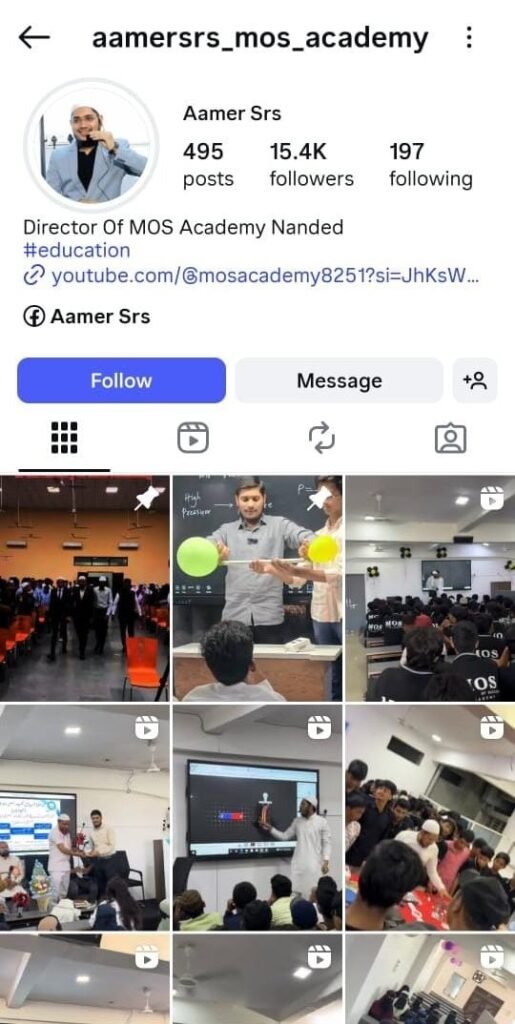 The account also carries other videos from the same classroom, and the bio reads,”Director of MOS Academy Nanded.”