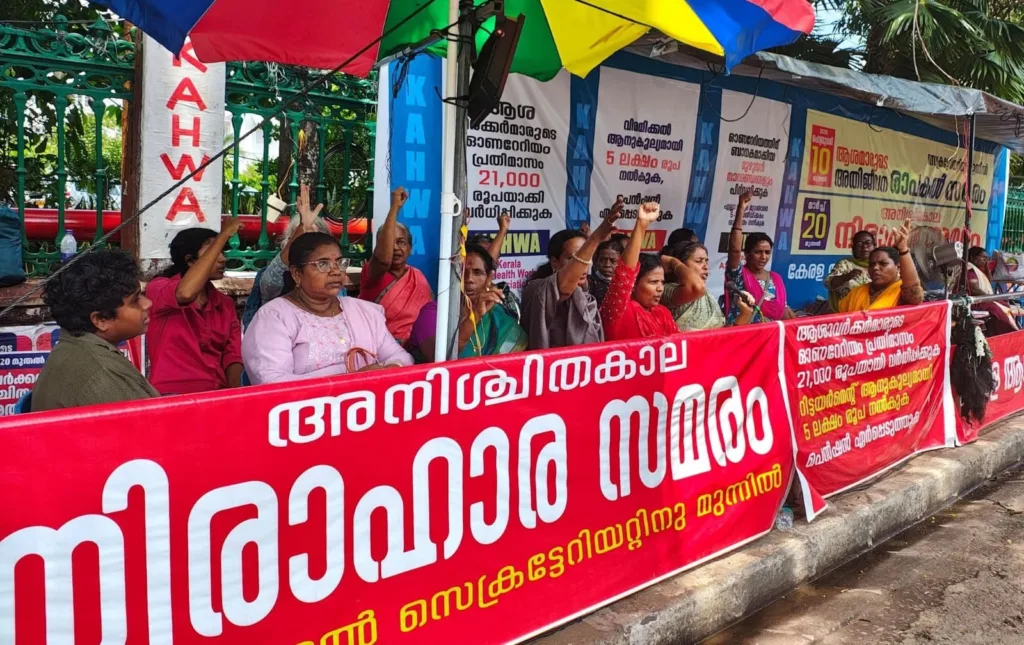 കേരള ആശ ഹെൽത്ത് വർക്കേഴ്സ് അസോസിയേഷന്റെ (KAHWA) നേതൃത്വത്തിൽ ഇപ്പോൾ നടക്കുന്ന ആശ വർക്കർമാരുടെ അനിശ്ചിതകാല  സമരം മൂന്ന് പ്രധാന ആവശ്യങ്ങളാണ് ഉന്നയിക്കുന്നത്. സംസ്ഥാന സർക്കാർ നൽകുന്ന പ്രതിമാസ ഓണറേറിയം 7,000 ൽ നിന്ന് 21,000 ആയി വർധിപ്പിക്കുക, ആശമാരുടെ വിരമിക്കൽ പ്രായം 62 വയസിൽ നിന്ന് ഉയർത്തുക, വിരമിക്കൽ ആനുകൂല്യമായി 5 ലക്ഷം രൂപ അനുവദിക്കുക എന്നിവയാണ് പ്രധാന ആവശ്യങ്ങൾ (രാമചന്ദ്രൻ, 2025). നാഷണൽ ഹെൽത്ത് മിഷന്റെ (NHM) ഭാഗമായി 2005 ലാണ് ഇന്ത്യയിൽ ആശ പദ്ധതി ആരംഭിക്കുന്നത്. പത്താം ക്ലാസ് യോഗ്യതയുള്ള 25 നും 45 നും ഇടയിൽ പ്രായമുള്ള സ്ത്രീകളെ ഉൾപ്പെടുത്തിക്കൊണ്ട് 2007-ൽ കേരളത്തിലും ആശ പ്രവർത്തകരെ നിയമിച്ചു. പരിശീലനം ലഭിച്ച വനിതാ കമ്മ്യൂണിറ്റി ഹെൽത്ത് ആക്ടിവിസ്റ്റുകളായ ആശമാർ അവരുടെ പ്രദേശങ്ങളിൽ ആരോഗ്യ സംരക്ഷണത്തിനായുള്ള പ്രാഥമിക സമ്പർക്ക കേന്ദ്രമായി പ്രവർത്തിക്കുകയും പൊതുജനാരോഗ്യ സംരക്ഷണവുമായി ബന്ധപ്പെട്ട വിഷയത്തിൽ പൊതുജനങ്ങളുടെ ഇടപെടൽ സുഗമമാക്കുകയും ചെയ്യുന്നു. നാഷണൽ ഹെൽത്ത് മിഷന്റെ കീഴിൽ പ്രവർത്തിക്കുന്ന ഇവരെ തൊഴിലാളികൾ എന്ന ഔദ്യോഗികാംഗീകാരമില്ലാത്ത, സാമൂഹിക സേവനം ചെയ്യുന്ന, കേവലം ഓണററി വൊളണ്ടിയർമാരായാണ് കണക്കാക്കുന്നത്. സ്ഥിരമായ ശമ്പളത്തിനോ മാറ്റാനുകൂല്യങ്ങൾക്കോ അർഹരല്ലാത്ത ഇവർ സാമൂഹിക സേവനത്തിനായി, ചെലവാക്കുന്ന സമയത്തിന് ചെറിയ തുക പ്രതിഫലമായി കൈപ്പറ്റാൻ മാത്രം അർഹതയുള്ള വിഭാഗം എന്ന നിലയിലാണ് ഈ പദ്ധതിയിൽ പരിഗണിക്കപ്പെടുന്നത്.