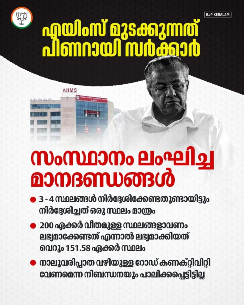 എയിംസിന് ഭൂമി കണ്ടെത്തുന്ന കാര്യത്തിൽ സംസ്ഥാനസർക്കാർ അനാസ്ഥ കാട്ടി എന്ന ബി ജെ പി പ്രചാരണത്തിൽ വാസ്തവമുണ്ടോ? മോദി സർക്കാരിൻ്റെ കേരളത്തോടുള്ള അവഗണന മറച്ചുവക്കാനുള്ള തന്ത്രമാണോ ഈ പ്രചാരണം?