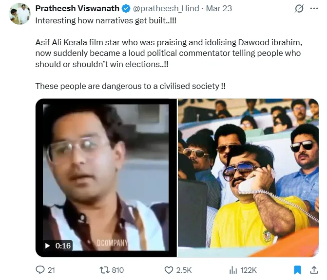 ആസിഫ് അലിയുടെ വാക്യങ്ങളെ, ക്രിമിനൽ പശ്ചാത്തലമുള്ള വ്യക്തിയോടുള്ള ആരാധനയായി വ്യാഖ്യാനിച്ച് ‘സമൂഹത്തിന് അപകടകാരി’ എന്ന തലക്കെട്ടോടെയാണ് പ്രചരിപ്പിക്കുന്നത്. മാർച്ച് 23 ന് പോസ്റ്റ് ചെയ്ത ഈ വീഡിയോ, ഇതുവരെ (മാർച്ച് 27) ഒരു ലക്ഷത്തിലധികം പേർ കണ്ടിട്ടുണ്ട്. രണ്ടായിരത്തിലധികം പേർ കമൻ്റ് ചെയ്തിട്ടുമുണ്ട്. മട്ടാഞ്ചേരി മാഫിയ, പട്ടിയുടെ വാൽ എന്നിങ്ങനെയൊക്കെയുള്ള കമൻ്റുകൾ അതിലുണ്ട്.