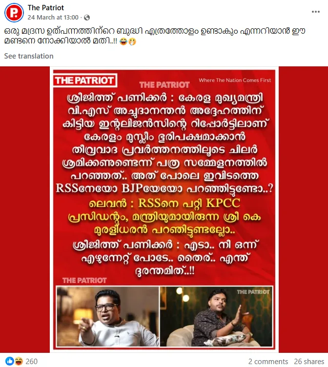 ഒരു ലക്ഷത്തി അൻപത്തി നാലായിരത്തോളം ഫോളോവേഴ്സ് ഉള്ള ഒരു അക്കൗണ്ട് ആണ് ‘The Patriot’. മുസ്ലിം വിരുദ്ധ പോസ്റ്റുകൾക്ക് പുറമേ സര്ക്കാര് വിരുദ്ധ പോസ്റ്റുകളും ഈ അക്കൗണ്ട് ദിനംപ്രതി പങ്കുവയ്ക്കുന്നുണ്ട്.