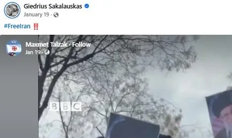 ഞങ്ങൾ നടത്തിയ ഫാക്റ്റ് ചെക്കിൽ അത് സത്യമല്ല എന്ന് കണ്ടെത്തി. ഈ വീഡിയോ Giedrius Sakalauskas എന്ന ഒരു മെറ്റാ വെരിഫൈഡ് ഫേസ് ബുക്ക് അക്കൗണ്ടിൽ ജനുവരി 19 ന് പോസ്റ്റ് ചെയ്തതായി കണ്ടു. FreeIran എന്ന ഹാഷ്ടാഗോടെയാണ് അത്. Maxmet Talzak എന്ന മറ്റൊരു ഫേസ്ബുക്ക് അക്കൗണ്ടിൽ നിന്നുള്ള ഷെയേഡ് പോസ്റ്റ് ആയിരുന്നു ഇത്.