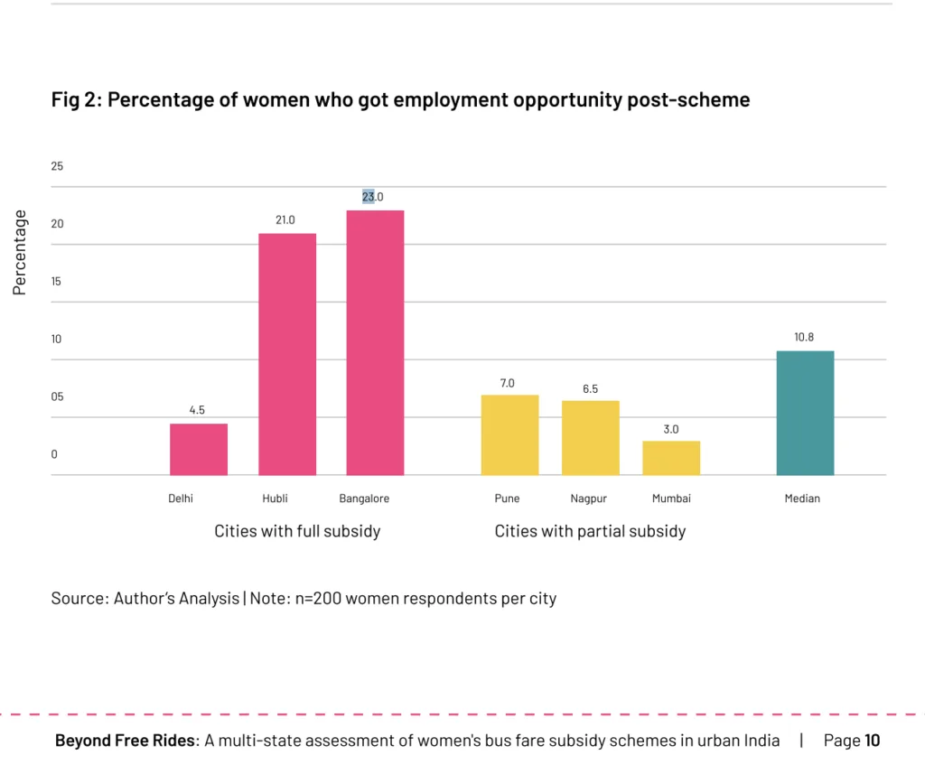 സൗജന്യ ബസ്സ് യാത്രാ പദ്ധതികൾക്കും ഈ വിഭാഗം സ്ത്രീകളെ യാത്രയ്ക്ക് പ്രാപ്തരാക്കുവാൻ പൂർണമായും സാധിക്കുന്നില്ല. കർണാടകത്തിൽ ശക്തി സ്കീമിന്റെ ഭാഗമായി യാത്ര ചെയ്യുന്നവരിൽ പത്ത് ശതമാനം മാത്രമാണ് വിദ്യാഭ്യാസമില്ലാത്തവർ. പ്രൈമറി വിദ്യാഭ്യാസം നേടിയത് 18.5 ശതമാനം പേരും.