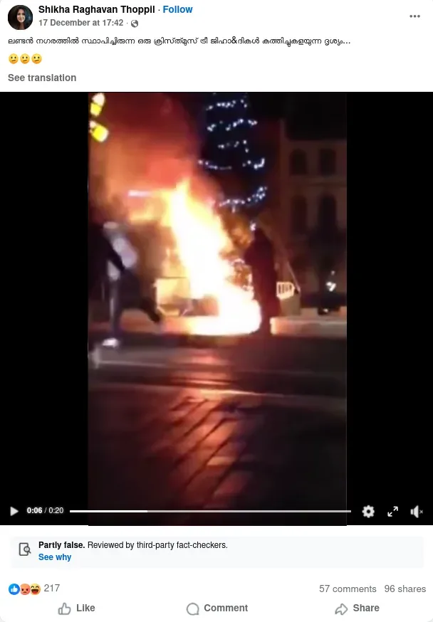 അപര വിദ്വേഷത്തിൽ മുങ്ങിയ ക്രിസ്മസ് കാലം -ലണ്ടനിൽ ക്രിസ്മസ് ട്രീ കത്തിച്ചത് മുസ്ളീം ഗ്രൂപ്പുകളല്ല: ഫാക്ട് ചെക്ക്