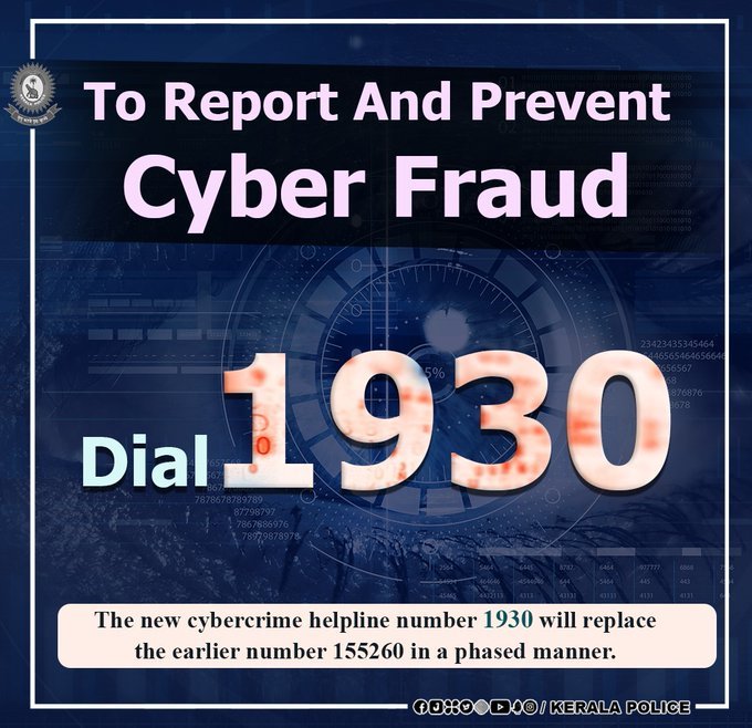 സൈബർ സാമ്പത്തിക തട്ടിപ്പുകൾ റിപ്പോർട്ട് ചെയ്യാനുള്ള ദേശീയ ഹെൽപ്ലൈൻ നമ്പറായ 1930ൽ പ്രതിദിനം 60,000ലേറെ കോളുകളാണ് വരുന്നത്.
