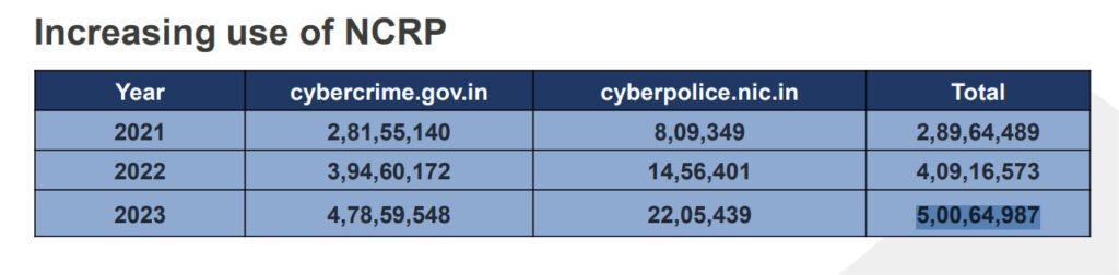 2025 മാർച്ച് 25ലെ കണക്ക് പ്രകാരം, ഇതു വരെ 23.39 ലക്ഷം സൈബർ പരാതികളാണ് ലഭിച്ചിട്ടുള്ളത് എന്ന് കേന്ദ്ര ആഭ്യന്തര മന്ത്രാലയം വ്യക്തമാക്കിയിട്ടുണ്ട്. നാഷണൽ സൈബർ ക്രൈം റിപ്പോർട്ടിങ് പോർട്ടലിലൂടെയും (NCRP) 1930ലൂടെയും ലഭിച്ച 13.36 ലക്ഷം പരാതികളിൽ നിന്നായി 4386 കോടി രൂപ സംരക്ഷിക്കാൻ കഴിഞ്ഞിട്ടുണ്ടെന്നും ലോക് സഭയിൽ നൽകിയ മറുപടിയിൽ ആഭ്യന്തര മന്ത്രാലയം പറയുന്നു.