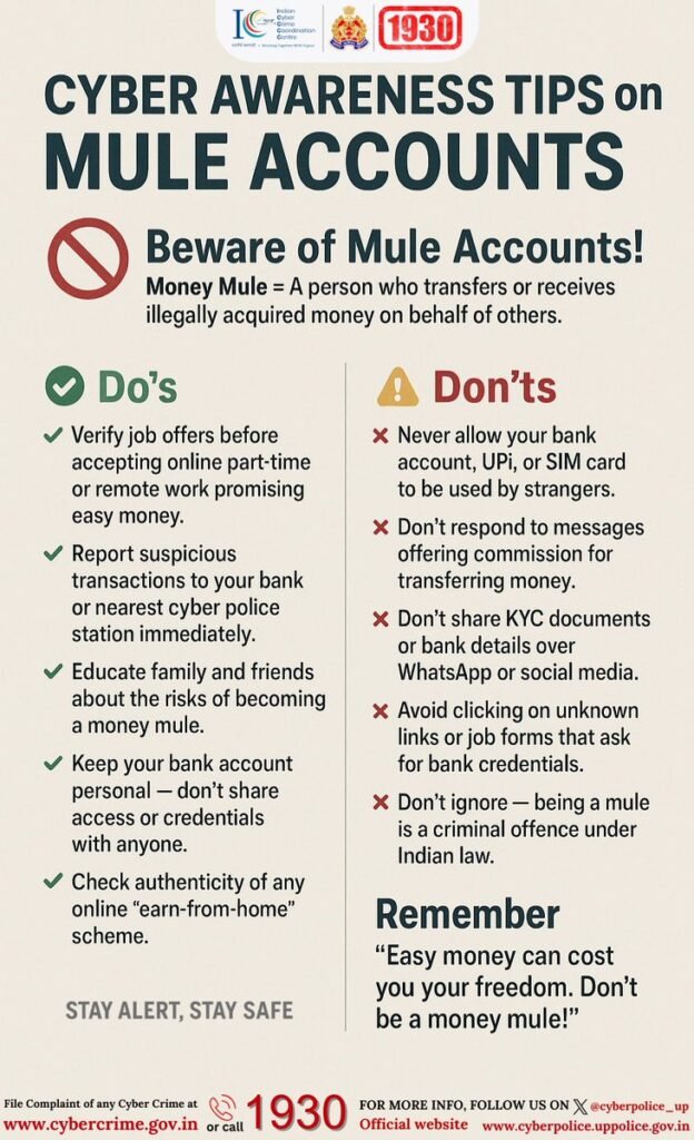 ഐ4സിയിൽ (ഇന്ത്യൻ സൈബർ ക്രൈം കോർഡിനേഷൻ സെന്റർ) നിന്നുള്ള വിവരങ്ങൾ പ്രകാരം ഇന്ത്യയിൽ ഒരു ദിവസം ശരാശരി 4000ത്തോളം മ്യൂൾ അക്കൗണ്ടുകളാണ് റിപ്പോർട്ട് ചെയ്യപ്പെടുന്നത്.