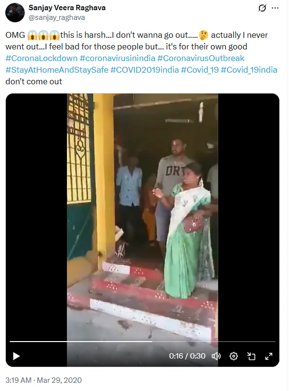 #CoronaLockdown #coronavirusinindia എന്നീ ഹാഷ്ടാഗുകളോടെ ഇതേ വീഡിയോയുടെ മറ്റൊരു പോസ്റ്റും മാർച്ച് 29 ന് എക്സിൽ പങ്കുവയ്ക്കപ്പെട്ടിരുന്നു.
