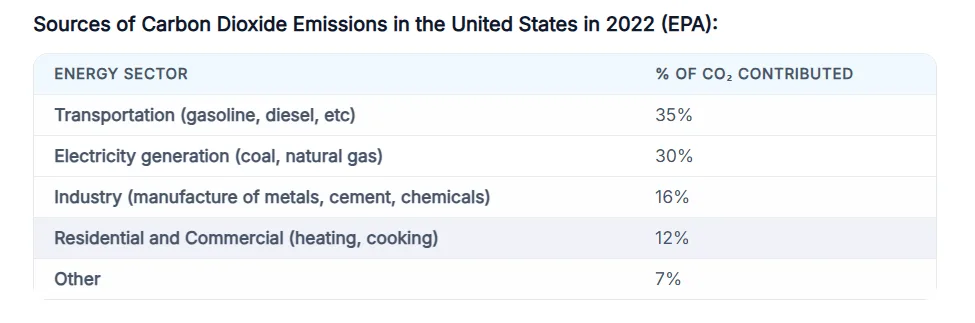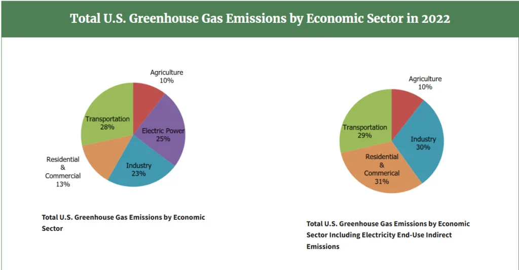 പുനരുപയോഗ ഊർജ്ജത്തിന്റെ കൂടിയ ഉപയോഗവും, കൽക്കരിയിൽ നിന്ന് പ്രകൃതിവാതകത്തിലേക്കുള്ള മാറ്റവും വൈദ്യുതി ഉൽപ്പാദന മേഖലയിലെ മലിനീകരണം കുറക്കാൻ ഇടയാക്കി. വൈദ്യുതിയുടെ ഉപയോഗവും ആവശ്യവും പ്രതീക്ഷിത അളവിൽ നിയന്ത്രിക്കാൻ കഴിഞ്ഞതും (Electricity Demand Stability) വൈദ്യുതി ഉൽപ്പാദന മേഖലയിലെ മലിനീകരണം കുറക്കാൻ സഹായിച്ചു. അമേരിക്കയിൽ ഹരിതഗൃഹ വാതക മലിനീകരണത്തിൽ ഏറ്റവും വലിയ പങ്ക് വഹിക്കുന്നത് ഗതാഗത മേഖലയാണ് (35%). ഇതിന് പിന്നാലെയാണ് വൈദ്യുതി ഉൽപ്പാദനവും (30%), വ്യവസായ മേഖലയും (16%).