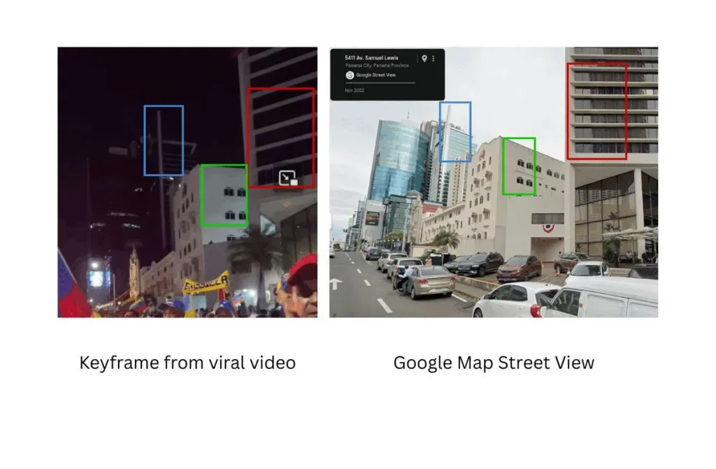 വീഡിയോയുടെ ജിയോ ലൊക്കേഷൻ പരിശോധിച്ചപ്പോൾ പനാമയിലെ വെനിസ്വേല എംബസ്സിയാണിതെന്ന് ഞങ്ങൾ കണ്ടെത്തി എംബസിക്ക് മുൻപിൽ വച്ചെടുത്ത വീഡിയോയാണ് ഇതെന്ന് ഞങ്ങൾക്ക് ഉറപ്പുവരുത്താൻ കഴിഞ്ഞു.