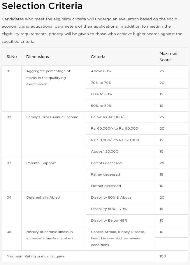 Screenshot of the scholarship selection criteria from the Malabar Charitable Trust’s website