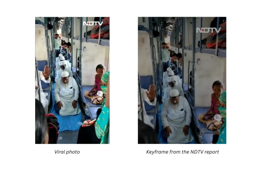 The analysis of the viral photo dates back to October 2022 and shows individuals performing namaz inside a train in Uttar Pradesh.