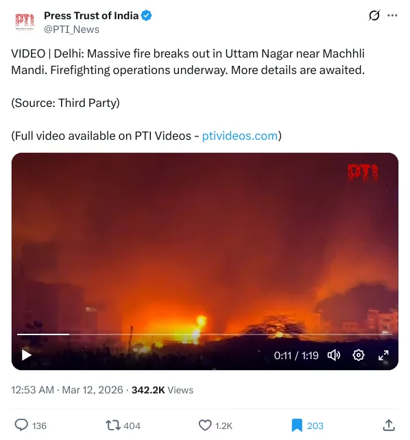 The Iran war, now in its twelfth day, has disrupted India’s LPG supply chain. India is prioritising domestic LPG supply, limiting commercial supply. Meanwhile, a video has gone viral on social media platforms alleging that an India-Israel joint defence facility in Delhi is engulfed in flames. A few linked the incident to a pro-Iran supporter. Others alleged a Pakistan strike in Delhi. However, we identified that a fire occurred at a fish market in Delhi, India, rather than a defence facility, and the viral claim is false.