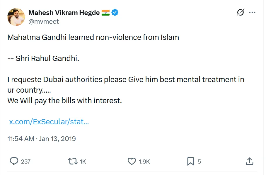 One comment read, “It’s like learning to be a vegetarian from a carnivorous animal.” Several similar remarks ridiculed the idea of associating the principle of non-violence with Islam and accused Rahul Gandhi of distorting history. Another user commented, “He does not even read his grandpa’s book The Discovery of India. At least he should read the 10th class history book once to know ahimsa was founded by Buddha—can someone educate him?”